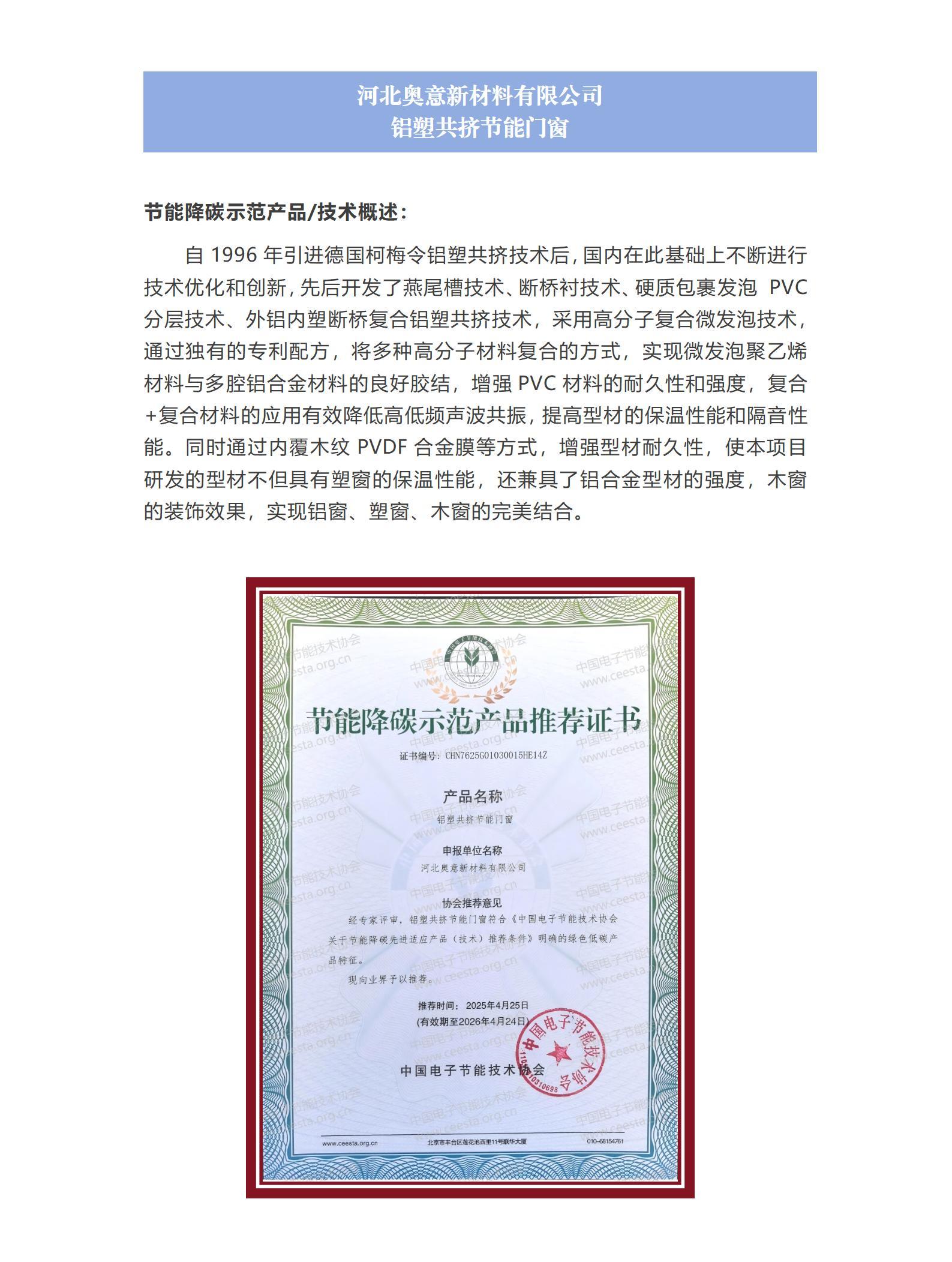 河北奥意新材料有限公司 铝塑共挤节能门窗
