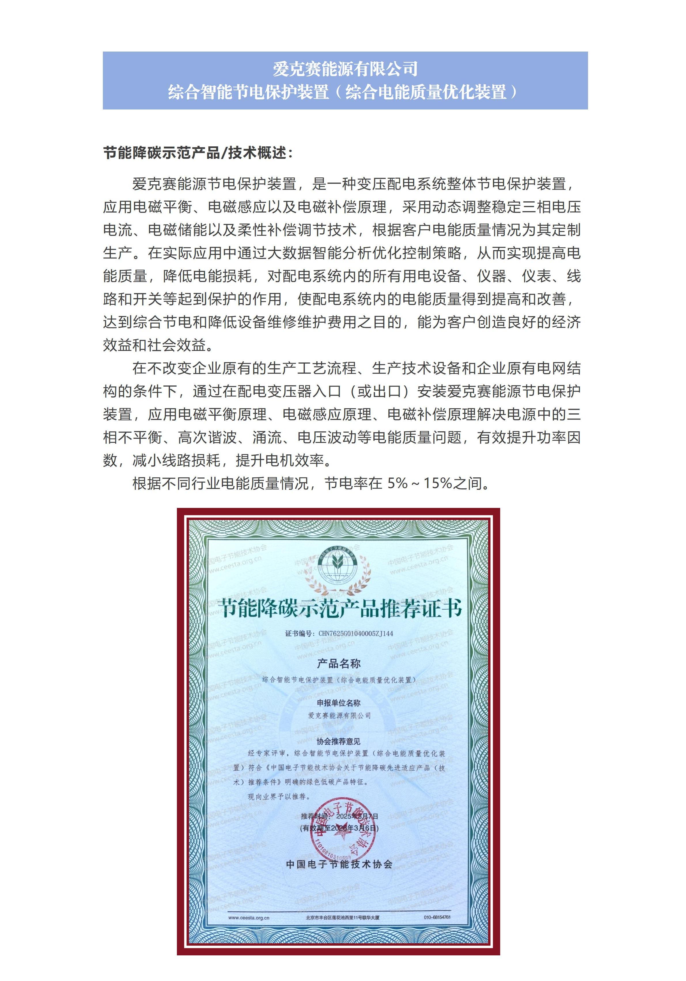 爱克赛能源有限公司 综合智能节电保护装置(综合电能质量优化装置)