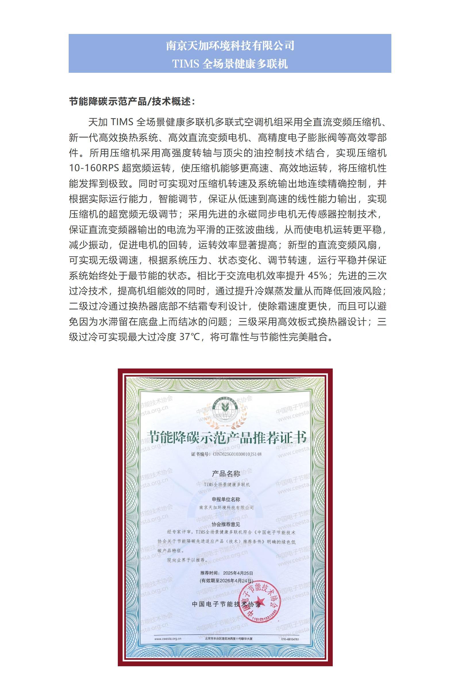 南京天加环境科技有限公司 TIMS全场景健康多联机