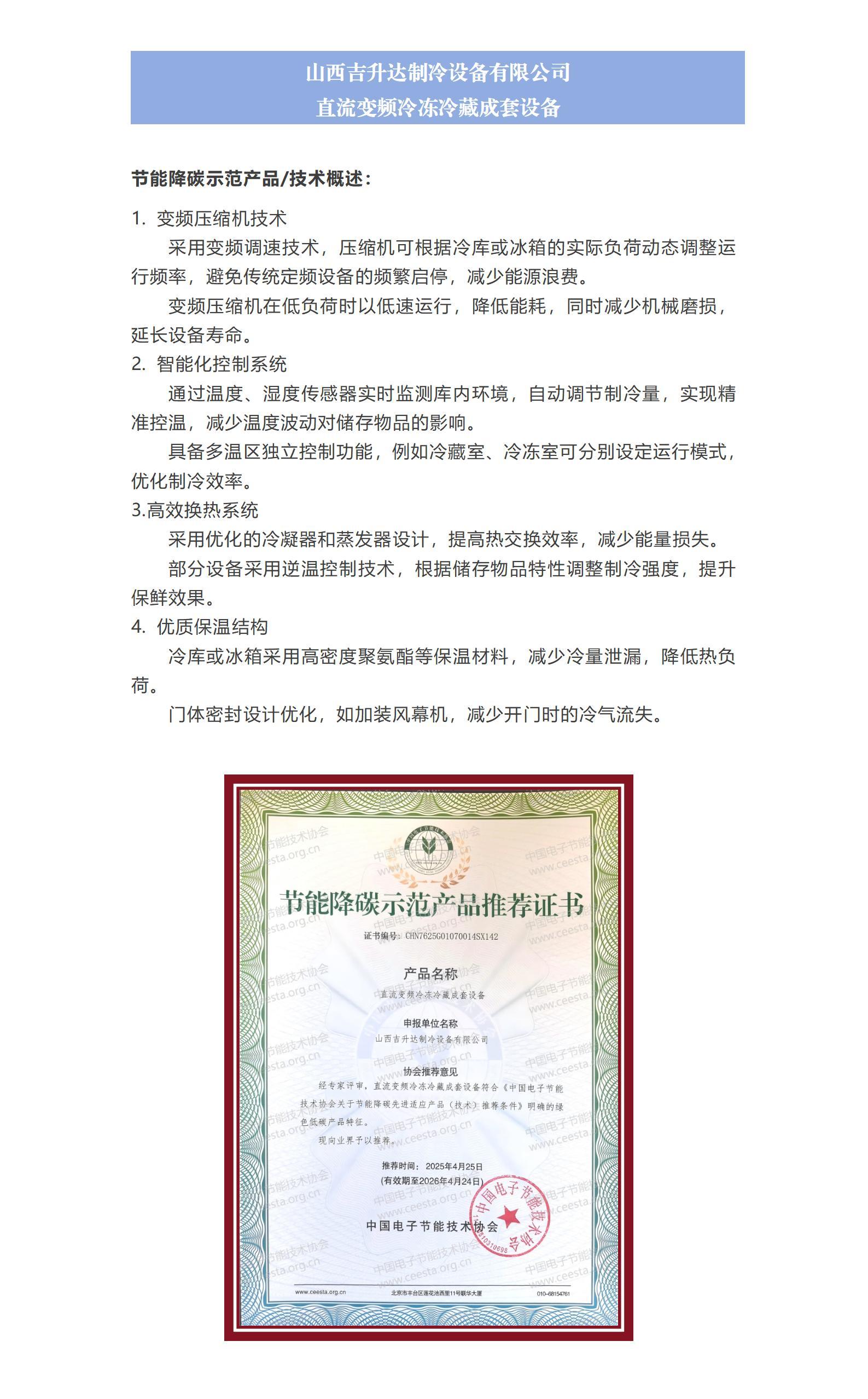 山西吉升达制冷设备有限公司 直流变频冷冻冷藏成套设备