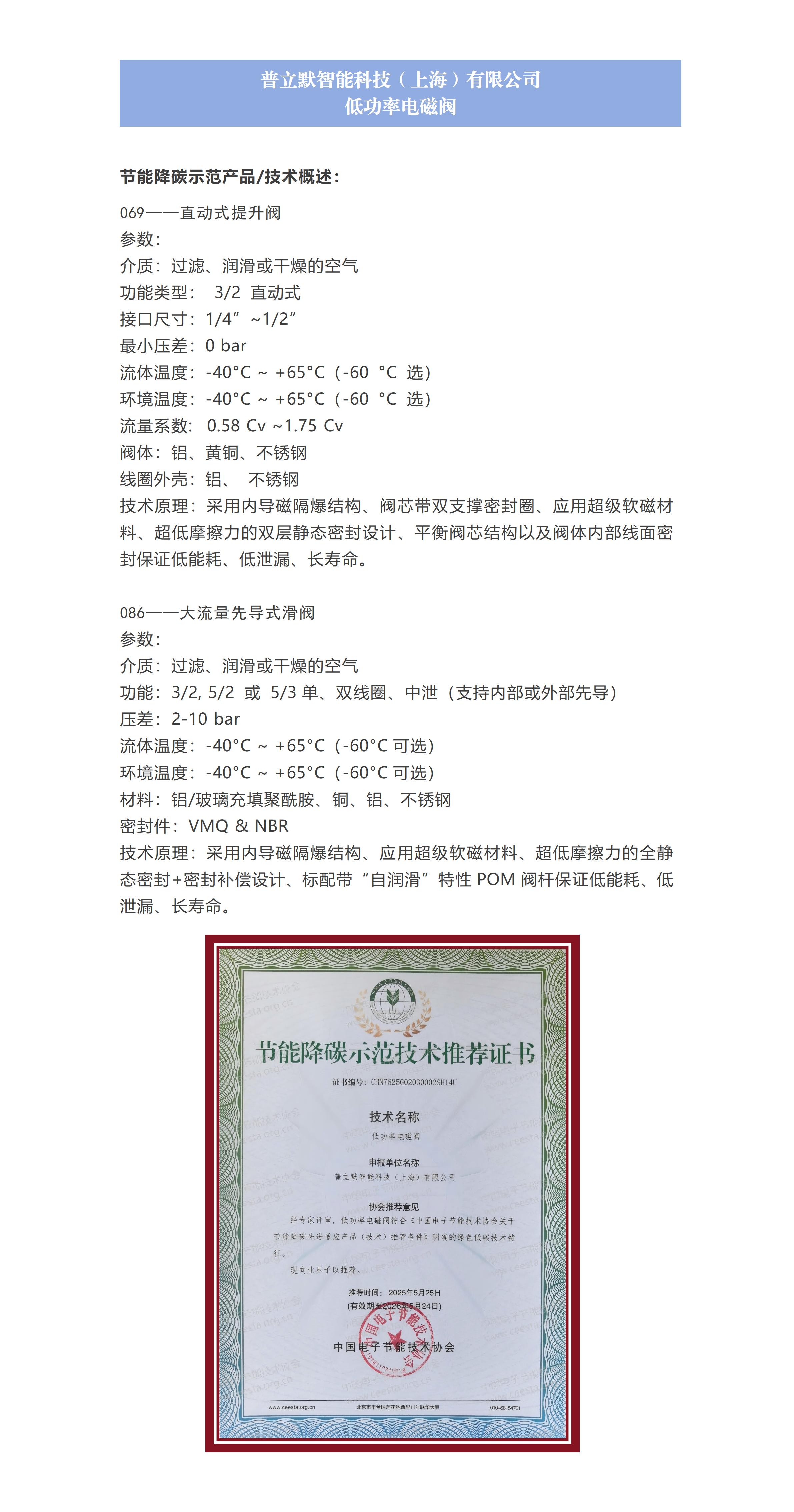 普立默智能科技(上海)有限公司 低功率电磁阀