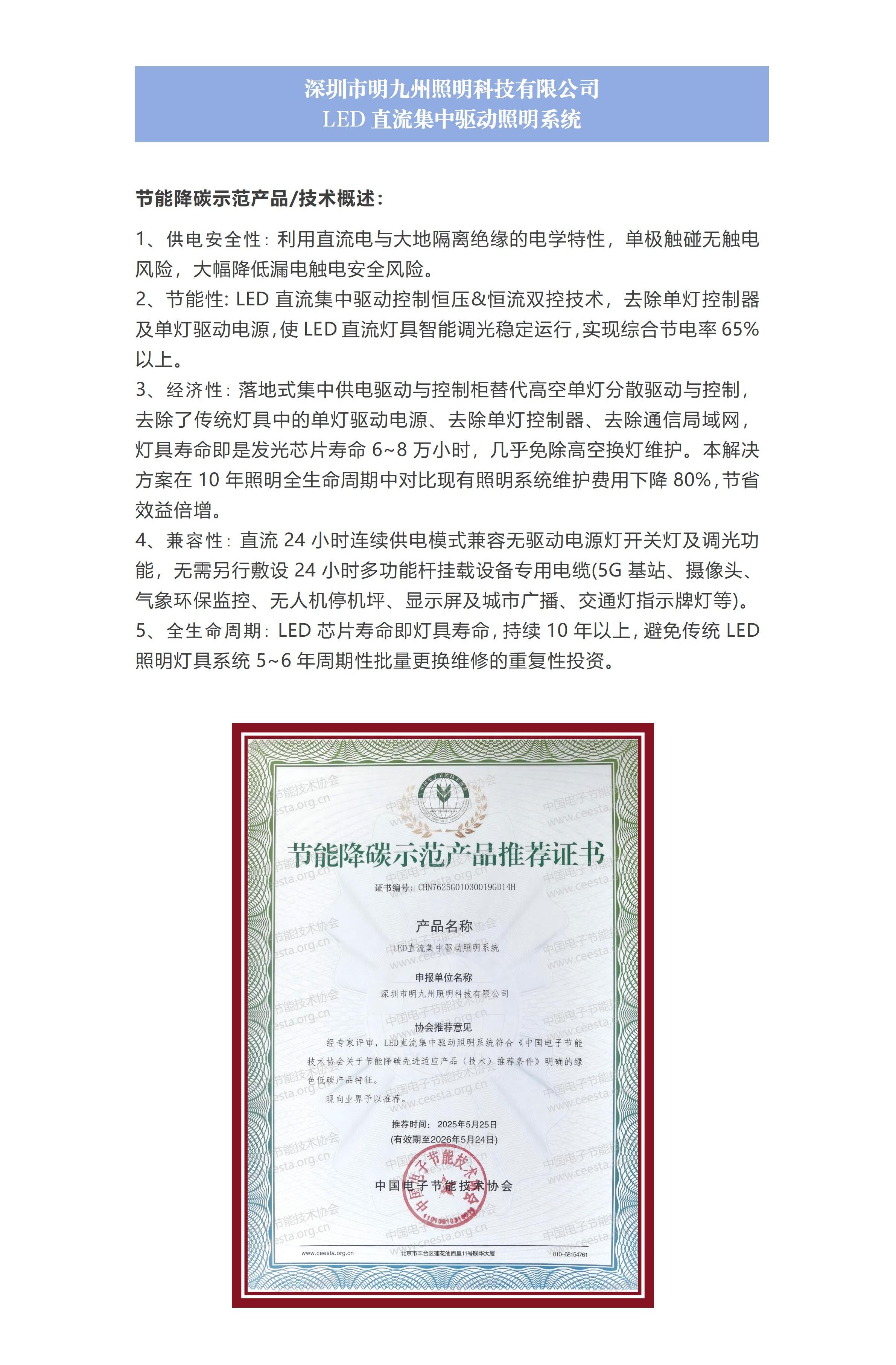 深圳市明九州照明科技有限公司 LED直流集中驱动照明系统