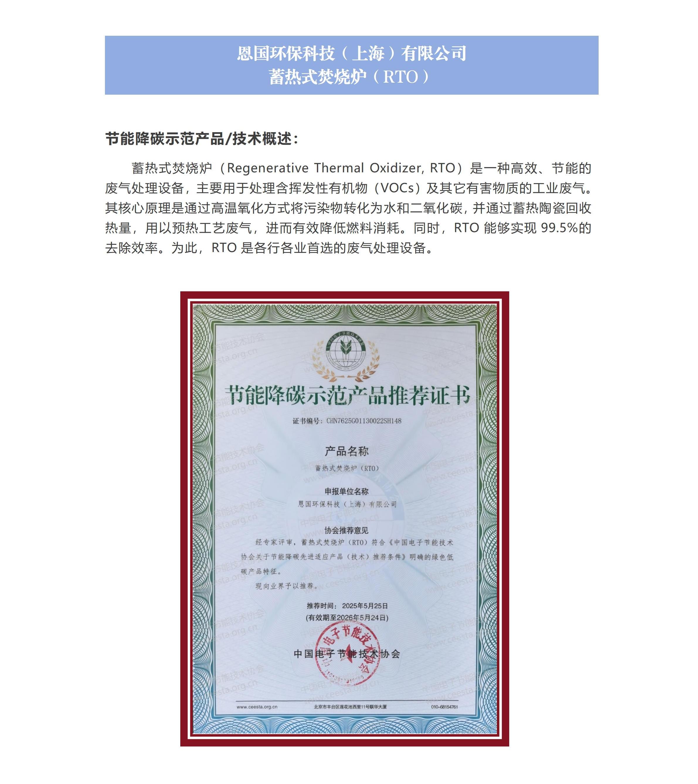 恩国环保科技(上海)有限公司 蓄热式焚烧炉(RTO)