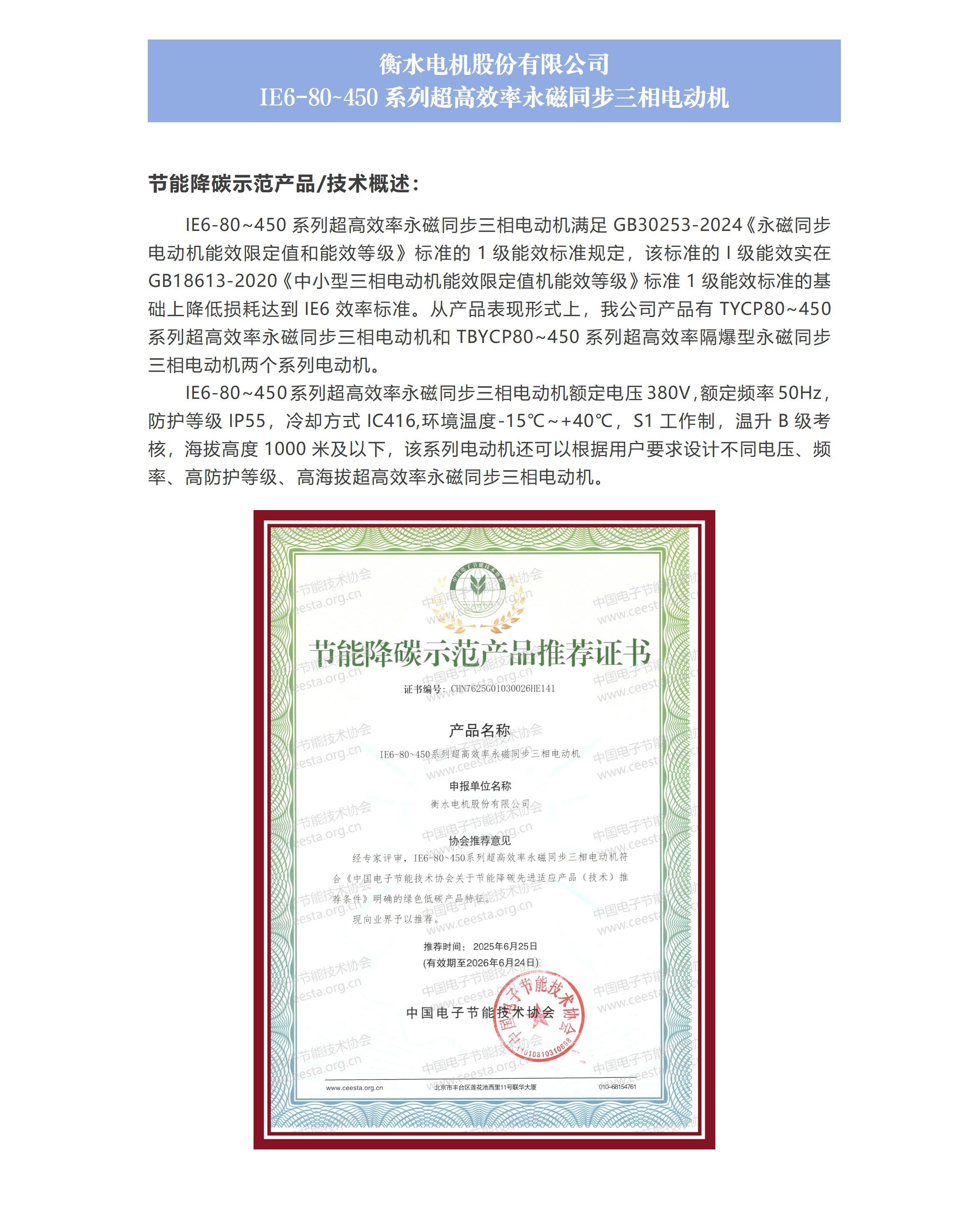 衡水电机股份有限公司 IE6-80~450系列超高效率永磁同步三相电动机