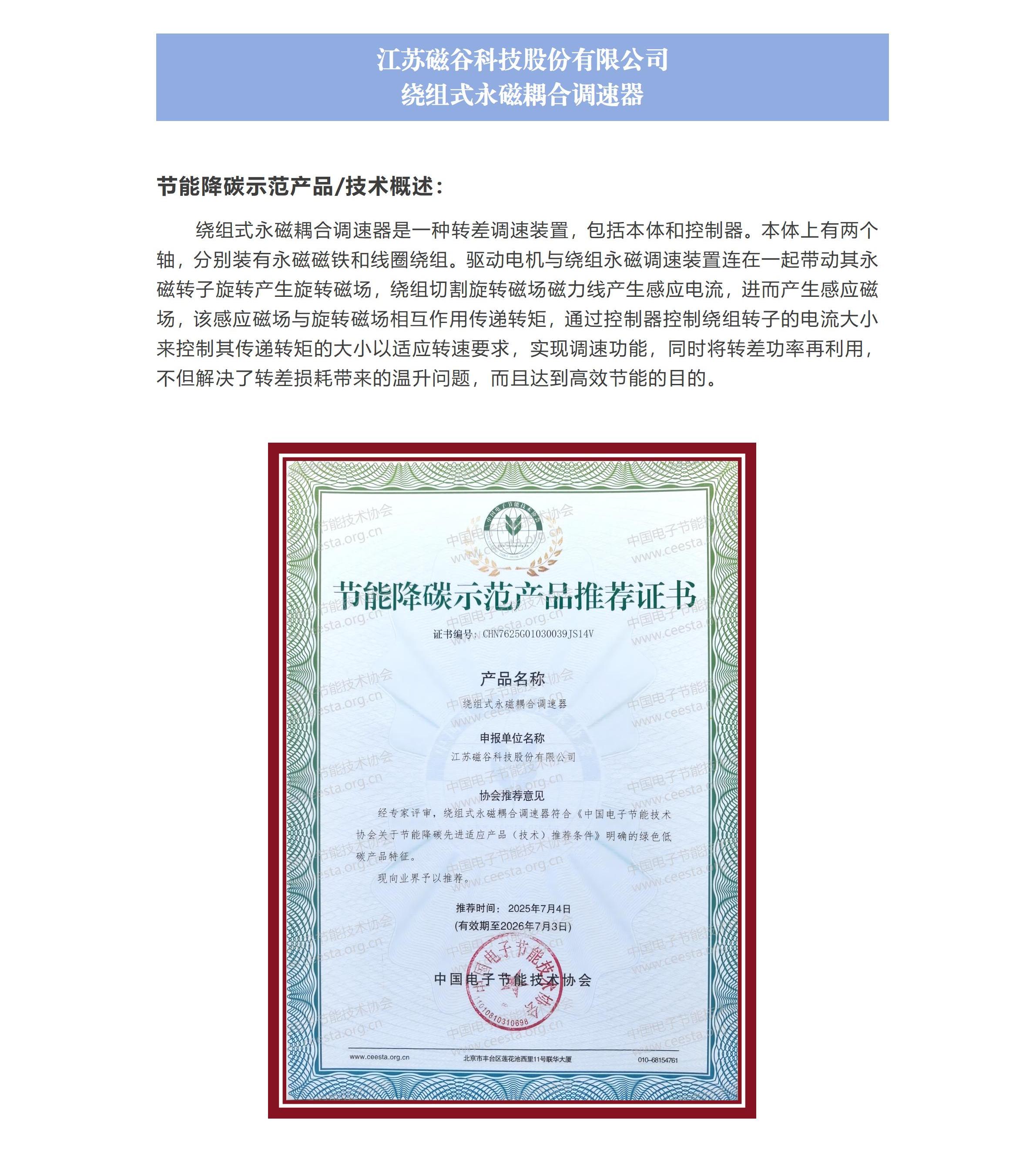 江苏磁谷科技股份有限公司 绕组式永磁耦合调速器