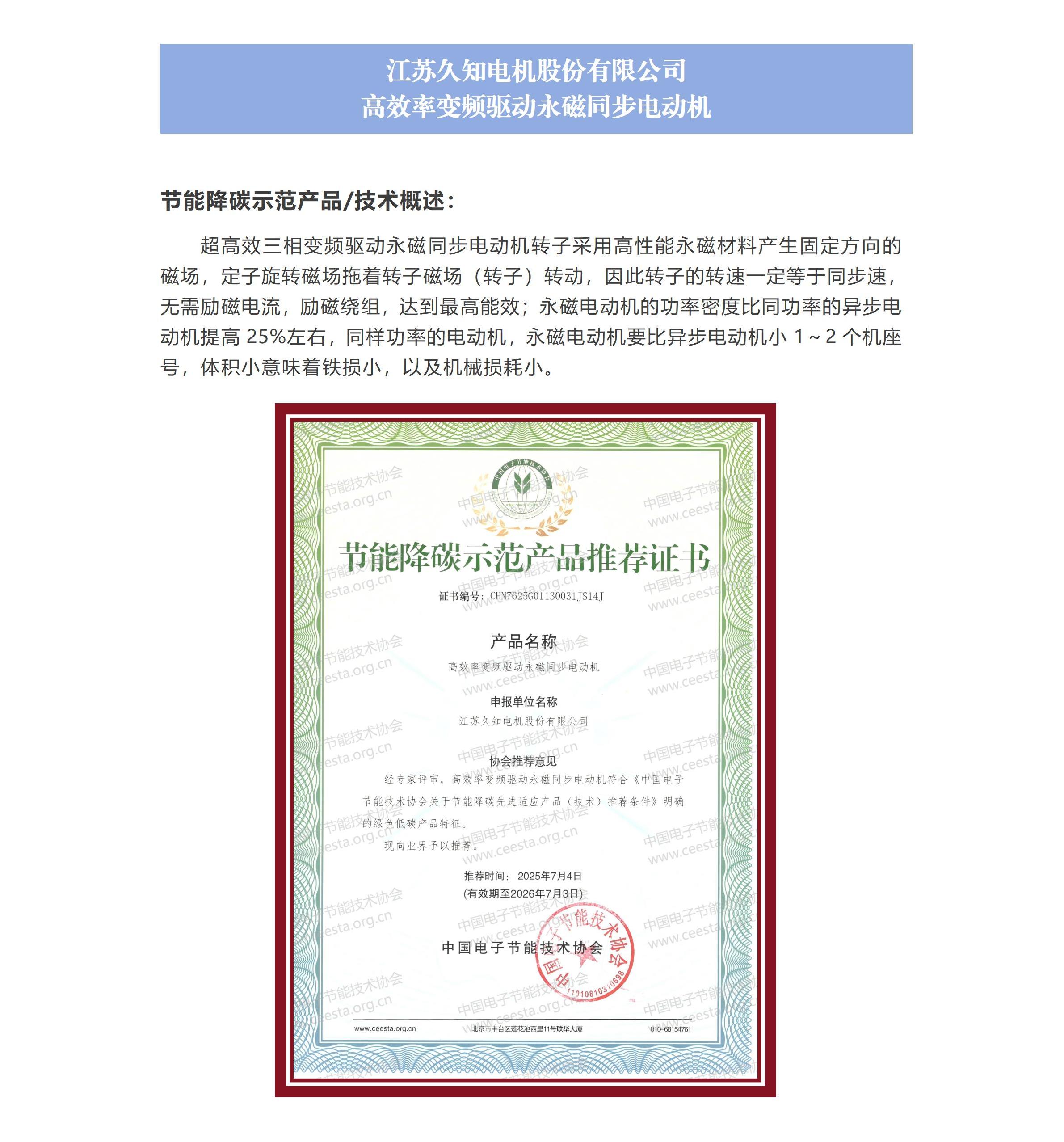 江苏久知电机股份有限公司 高效率变频驱动永磁同步电动机