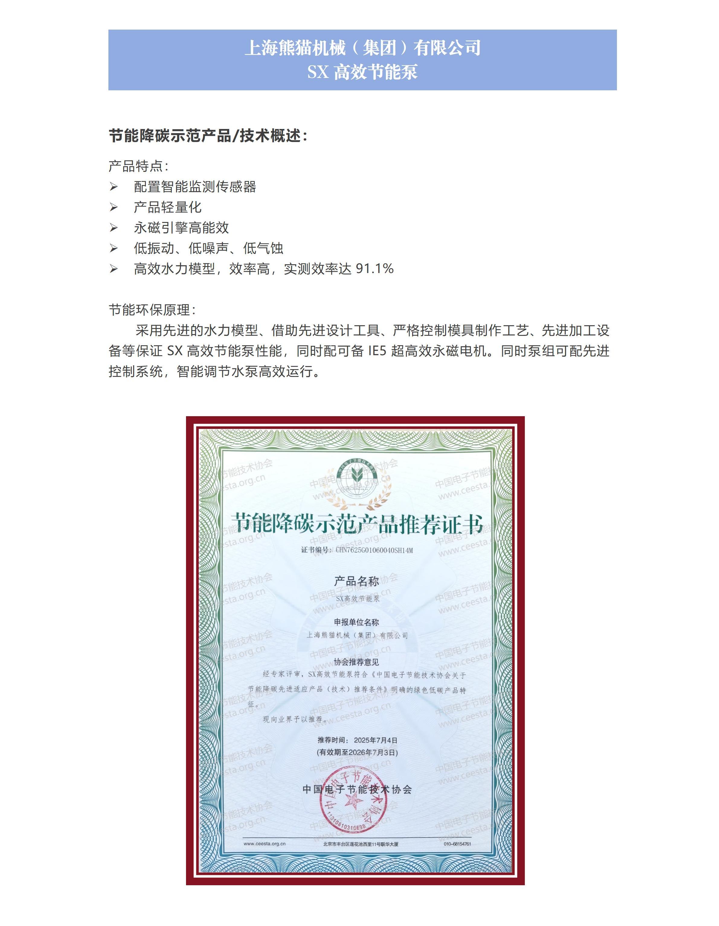 上海熊猫机械(集团)有限公司 SX高效节能泵