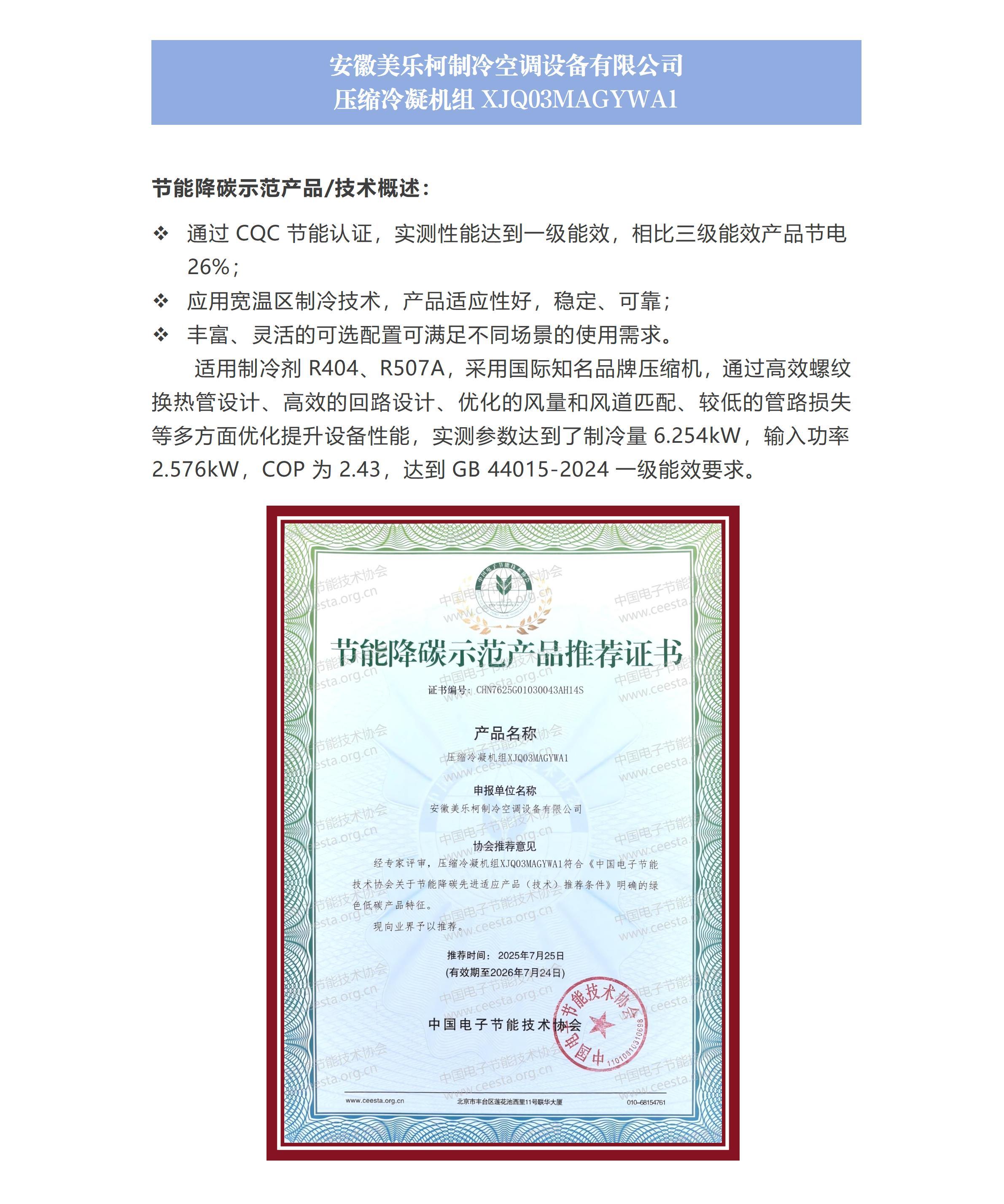 安徽美乐柯制冷空调设备有限公司 压缩冷凝机组XJQ03MAGYWA1