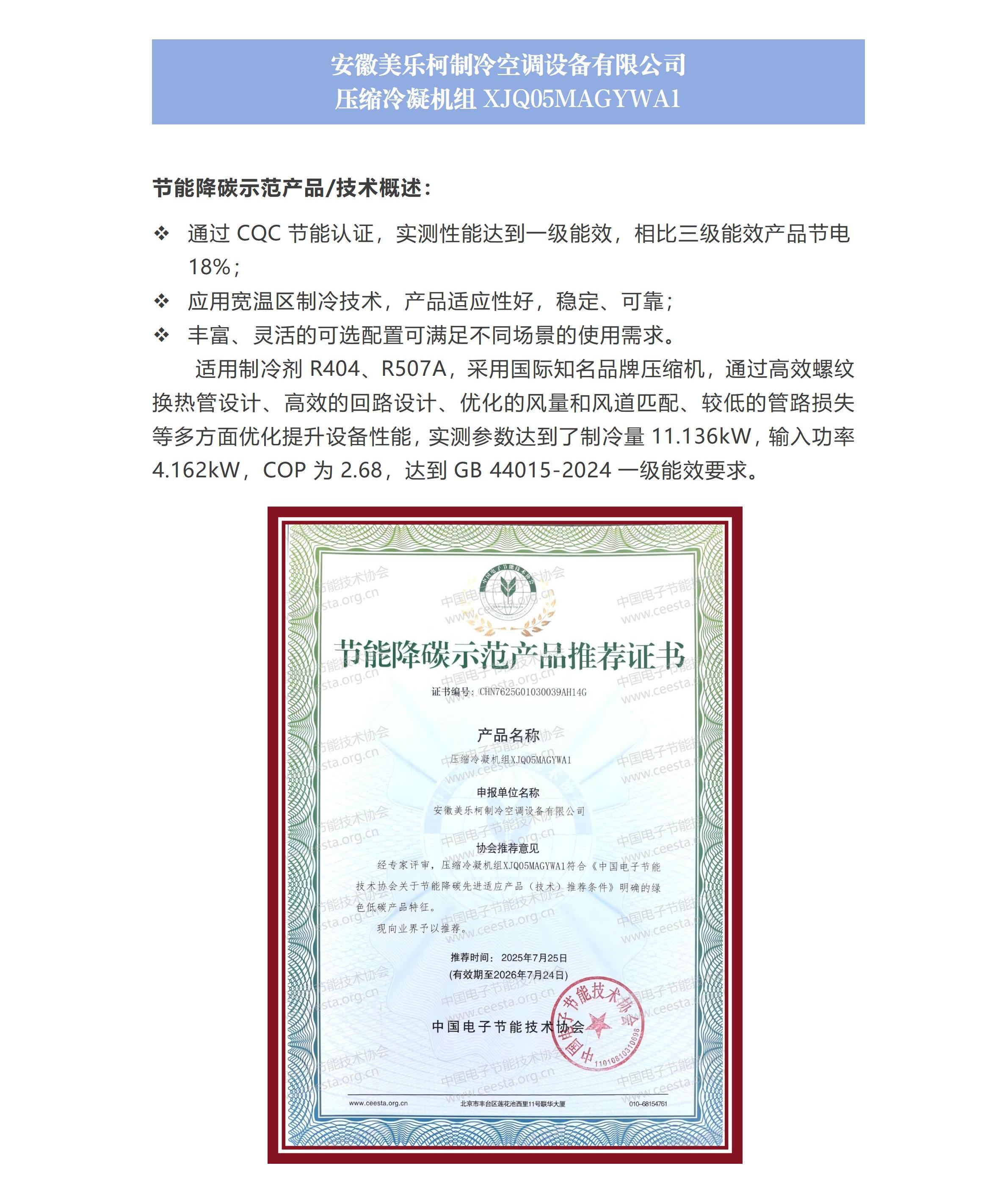 安徽美乐柯制冷空调设备有限公司 压缩冷凝机组XJQ05MAGYWA1