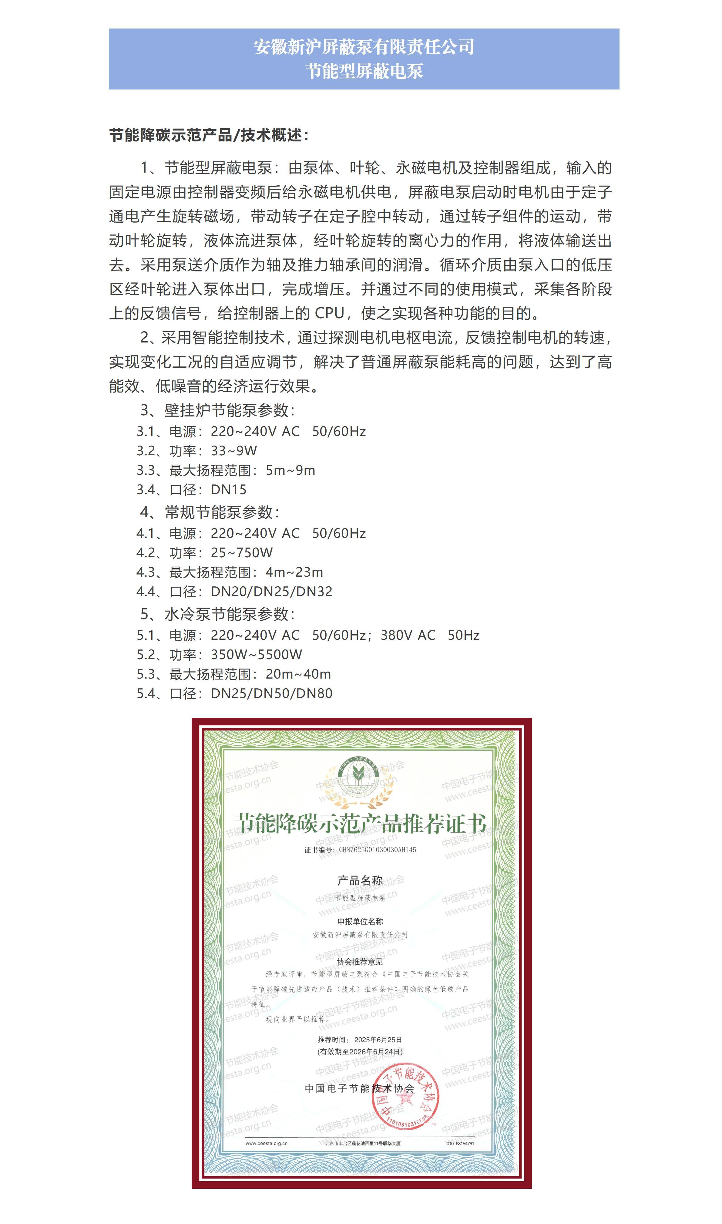 安徽新沪屏蔽泵有限责任公司 节能型屏蔽电泵