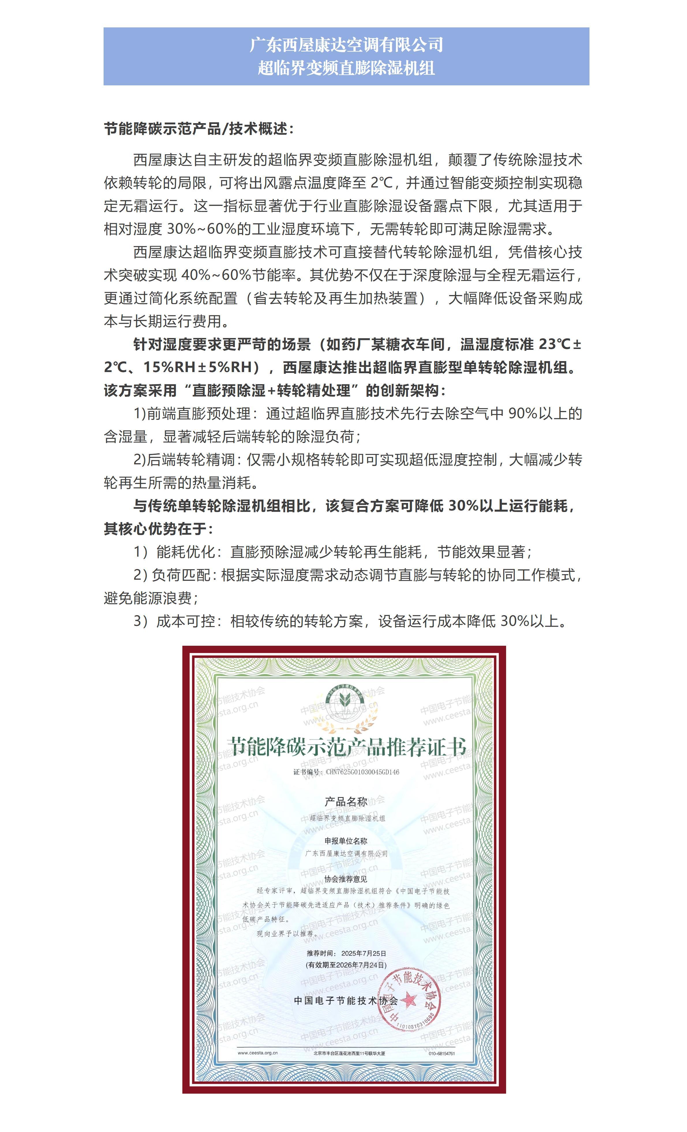 广东西屋康达空调有限公司 超临界变频直膨除湿机组