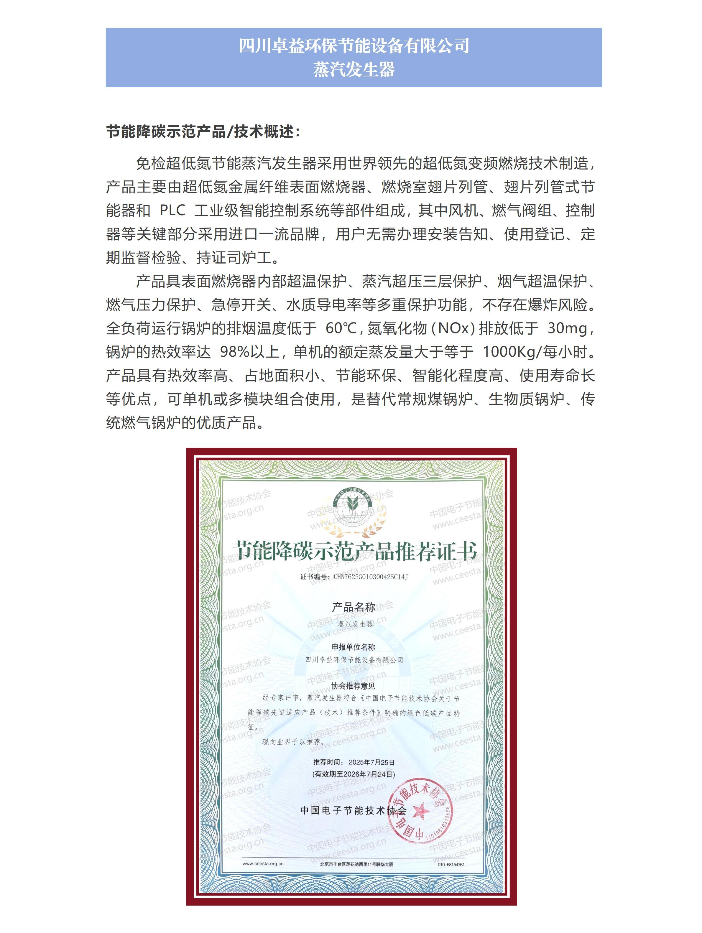 四川卓益环保节能设备有限公司 蒸汽发生器