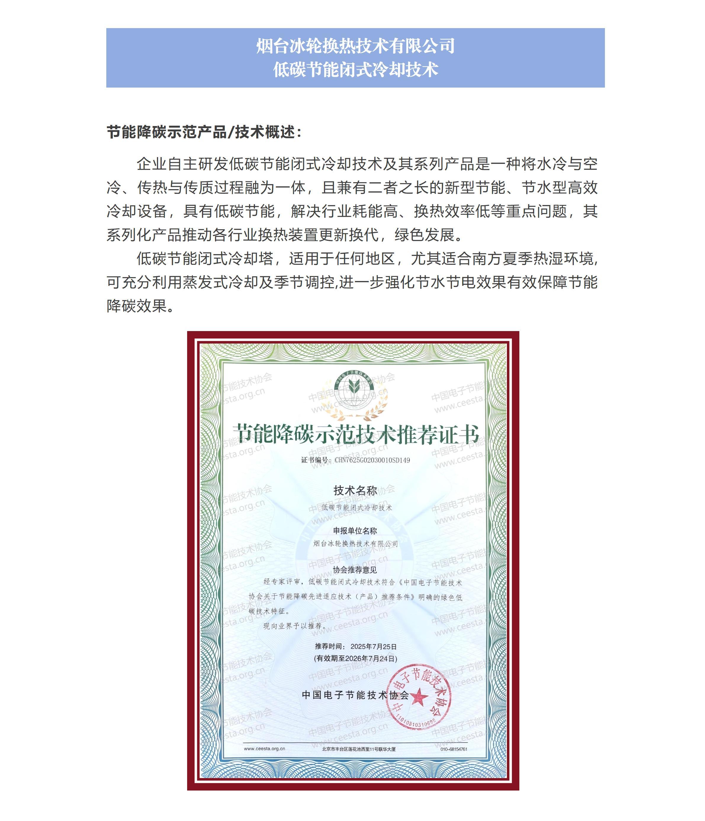 烟台冰轮换热技术有限公司 低碳节能闭式冷却技术