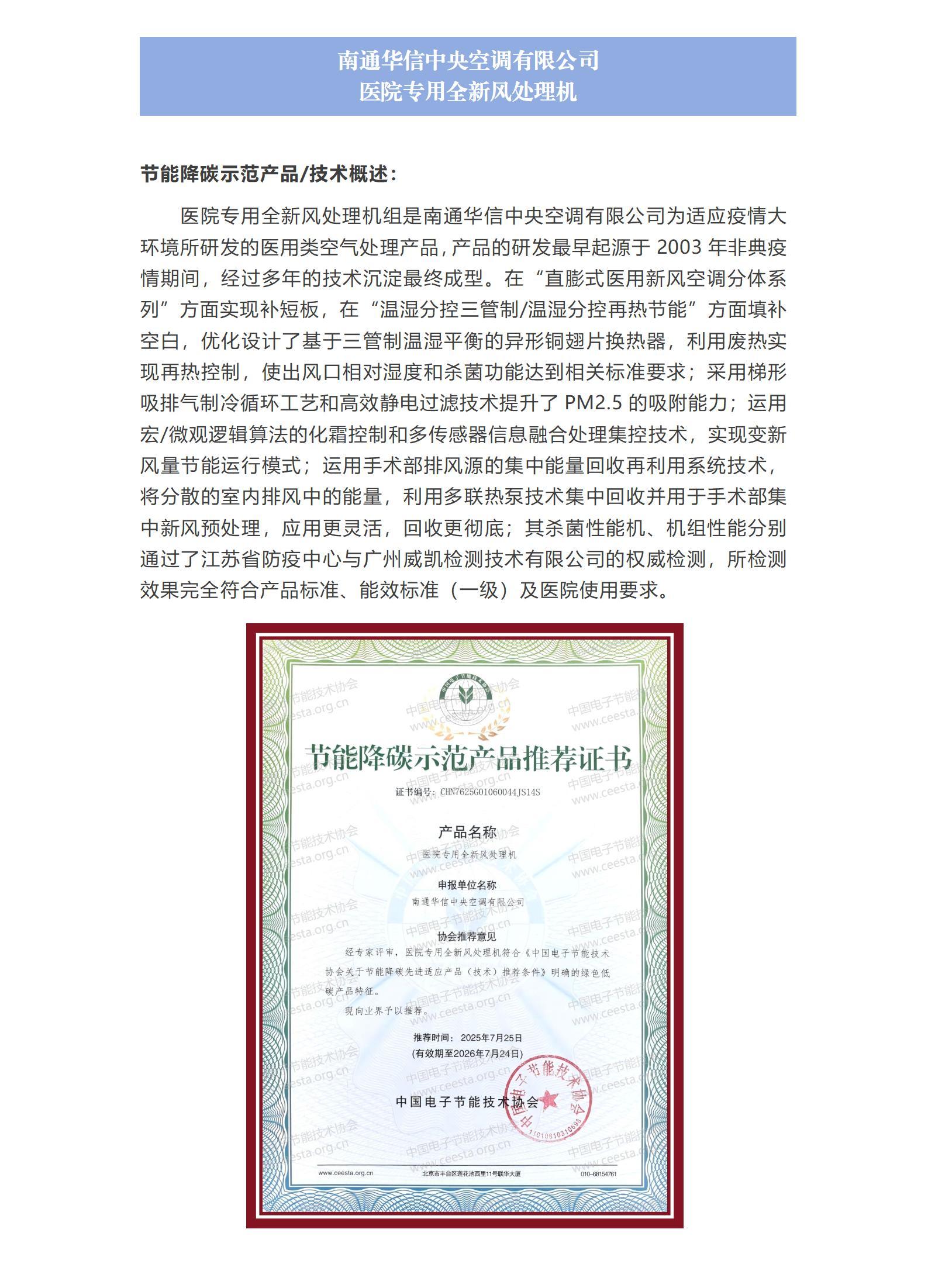 南通华信中央空调有限公司 医院专用全新风处理机
