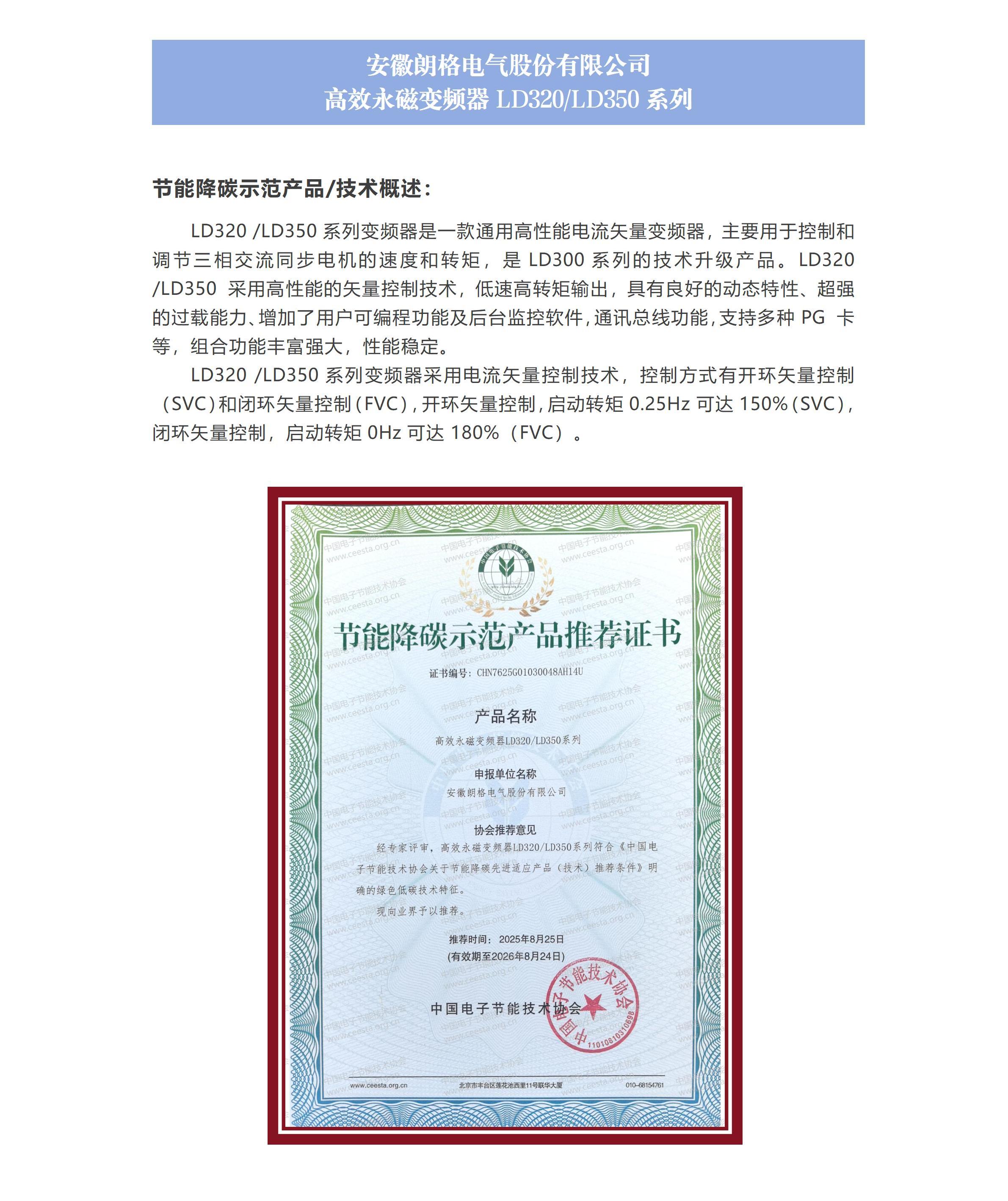 安徽朗格电气股份有限公司 高效永磁变频器LD320/LD350系列