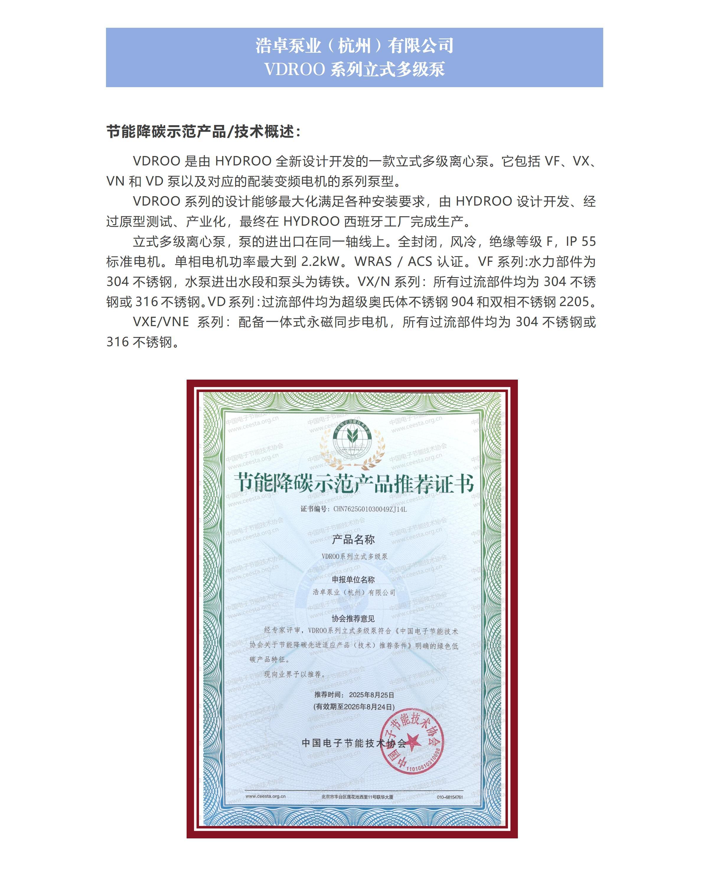 浩卓泵业(杭州)有限公司 VDROO系列立式多级泵