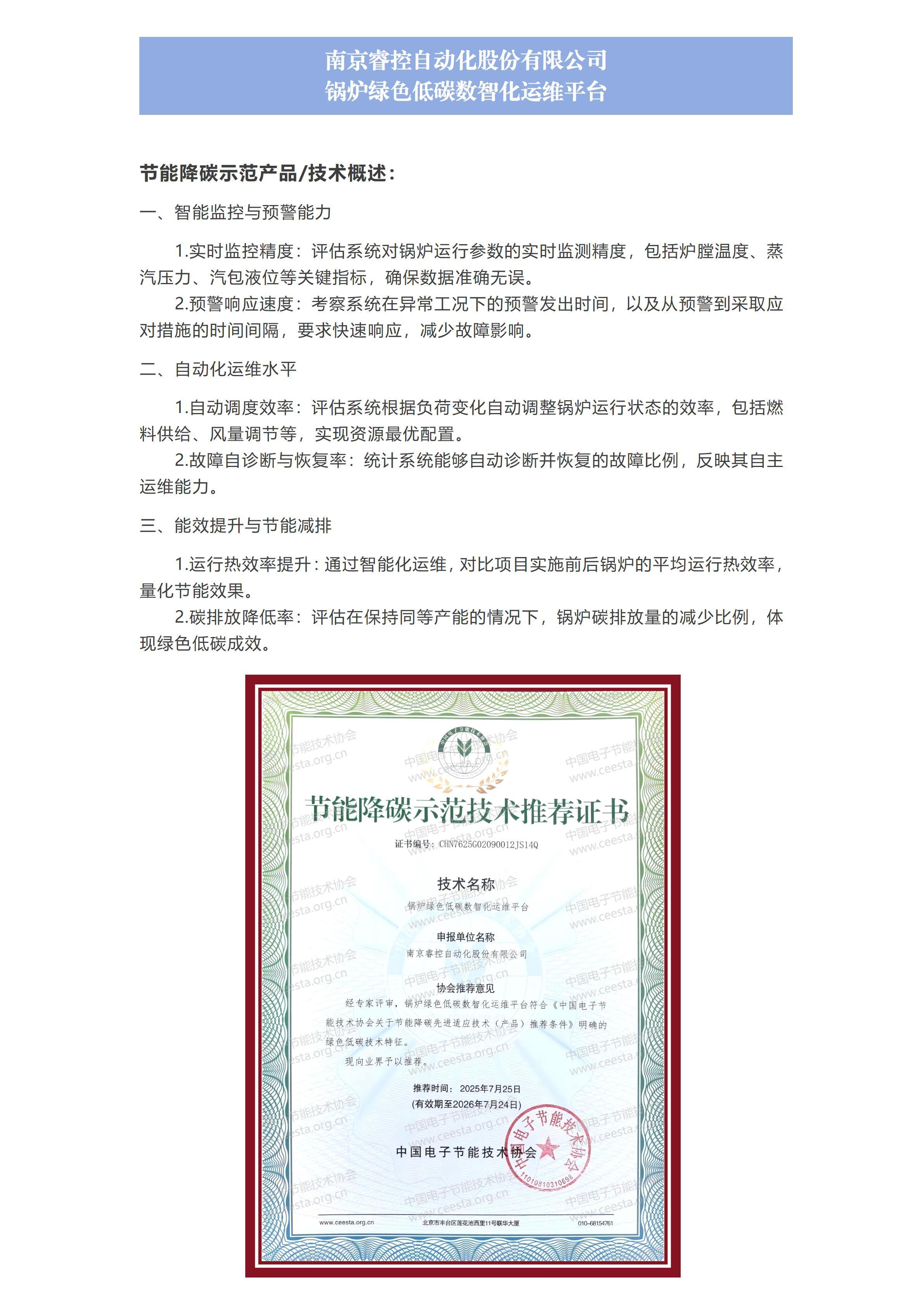 南京睿控自动化股份有限公司 锅炉绿色低碳数智化运维平台