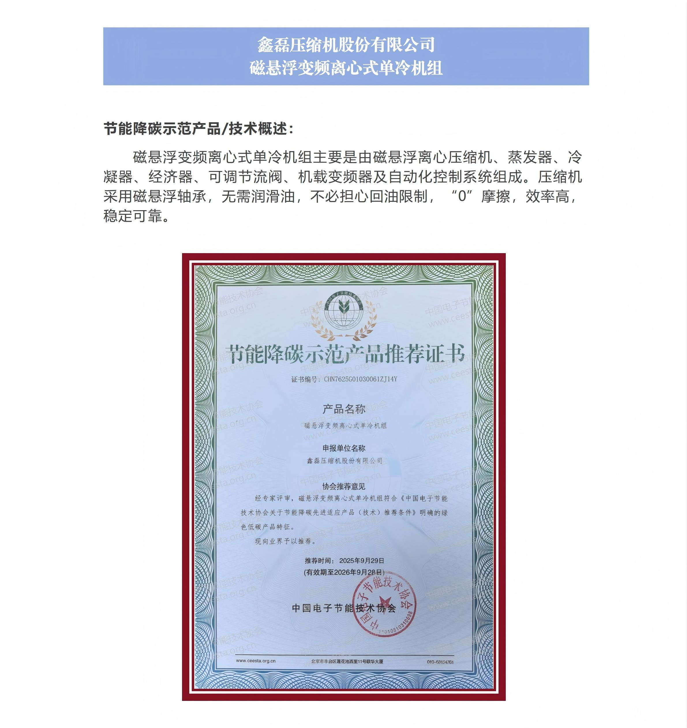 鑫磊压缩机股份有限公司 磁悬浮变频离心式单冷机组