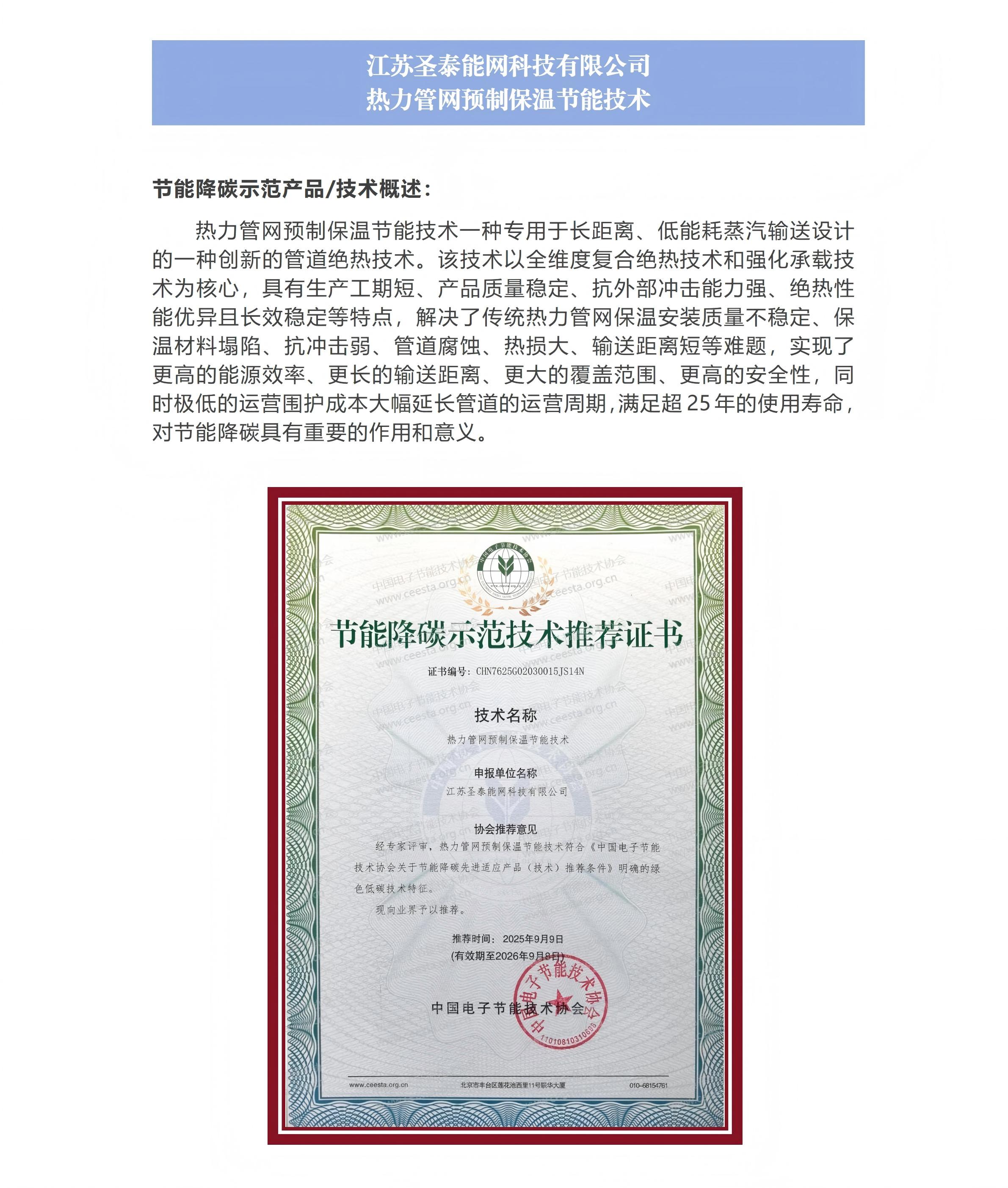 江苏圣泰能网科技有限公司 热力管网预制保温节能技术