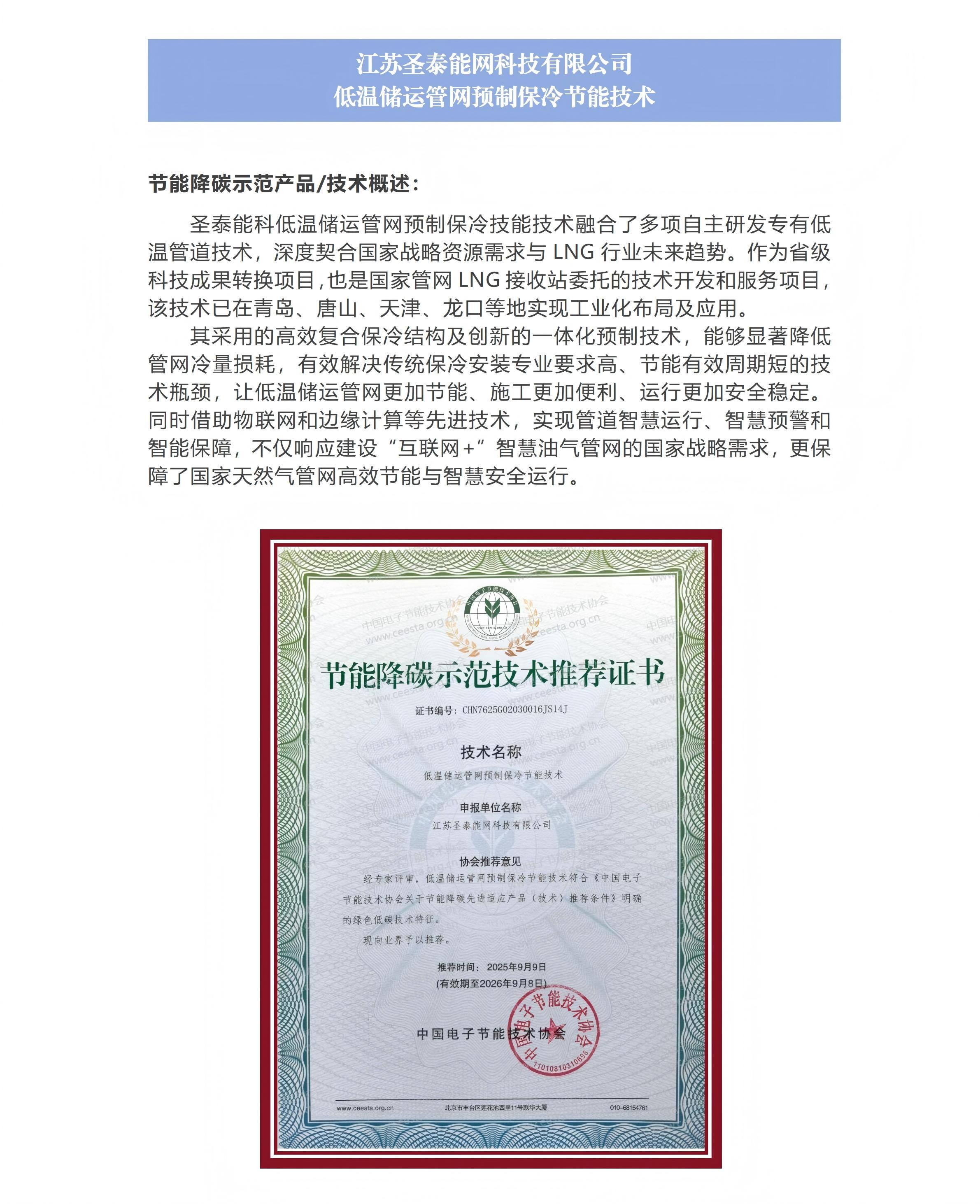 江苏圣泰能网科技有限公司 低温储运管网预制保冷节能技术