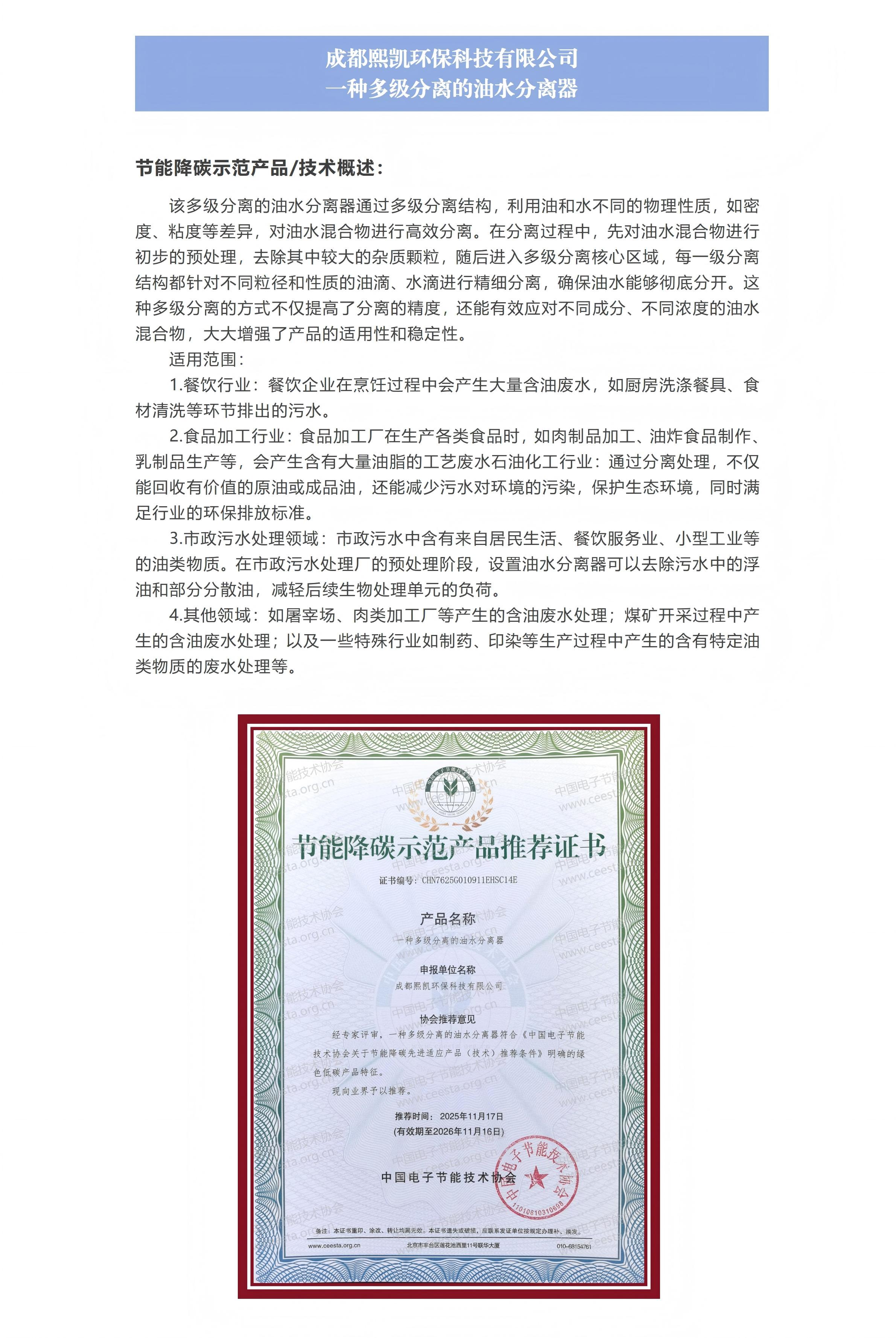 成都熙凯环保科技有限公司 一种多级分离的油水分离器