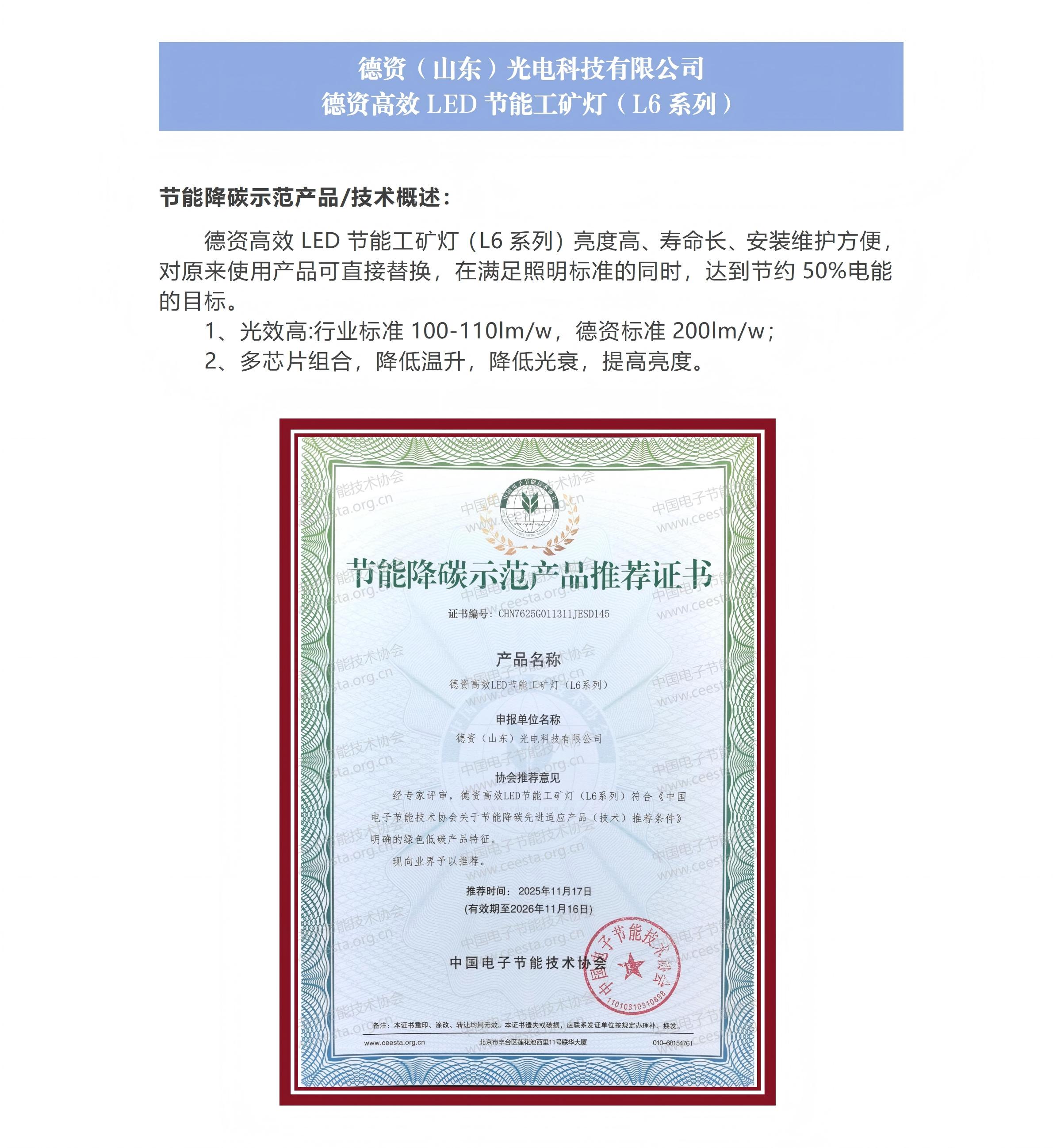 德资(山东)光电科技有限公司 德资高效LED节能工矿灯(L6系列)