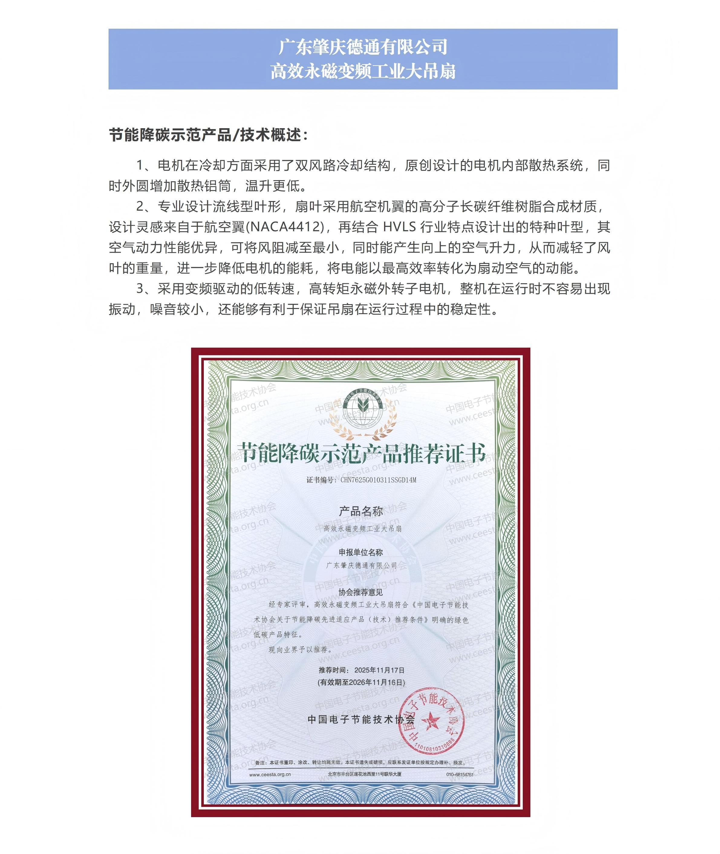 广东肇庆德通有限公司 高效永磁变频工业大吊扇