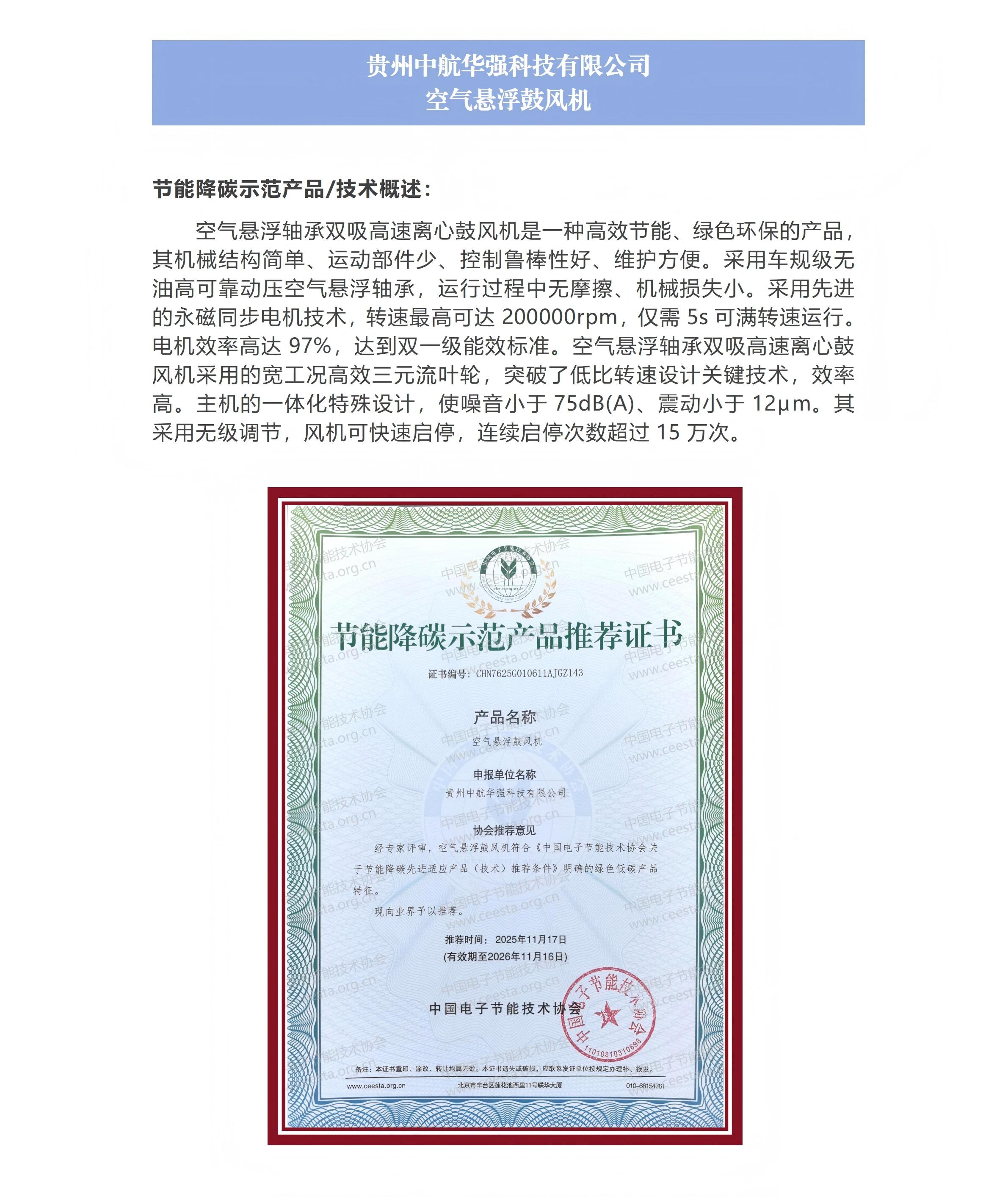 贵州中航华强科技有限公司 空气悬浮鼓风机