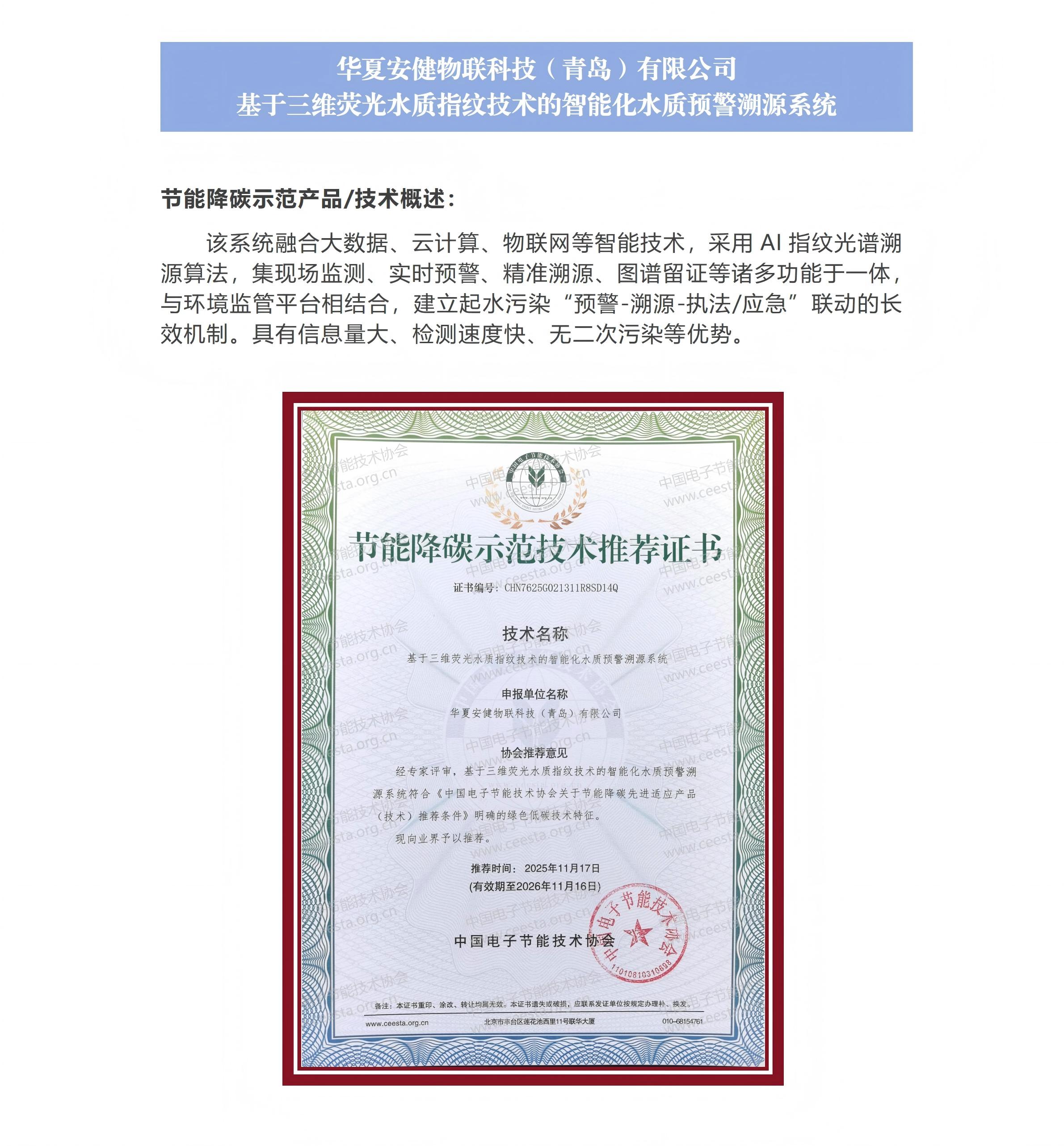 华夏安健物联科技(青岛)有限公司 基于三维荧光水质指纹技术的智能化水质预警溯源系统