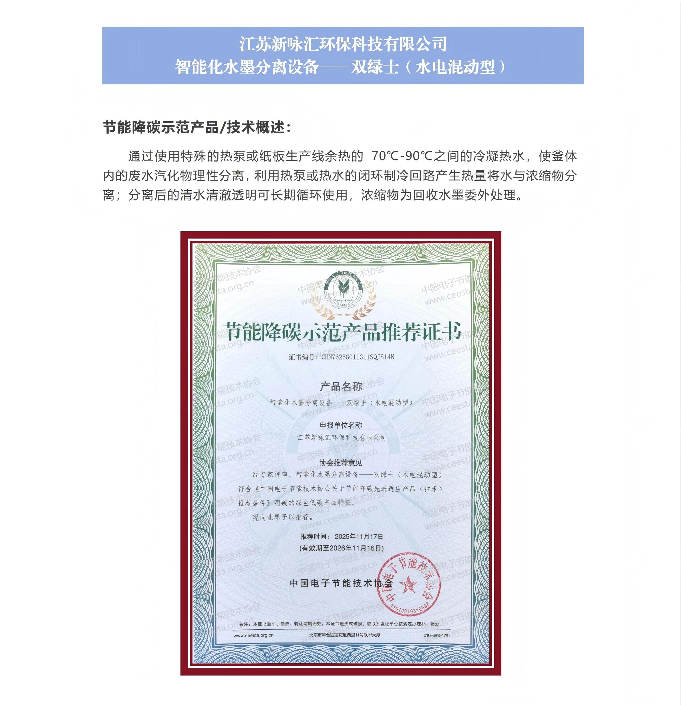 江苏新咏汇环保科技有限公司 智能化水墨分离设备——双绿士(水电混动型)